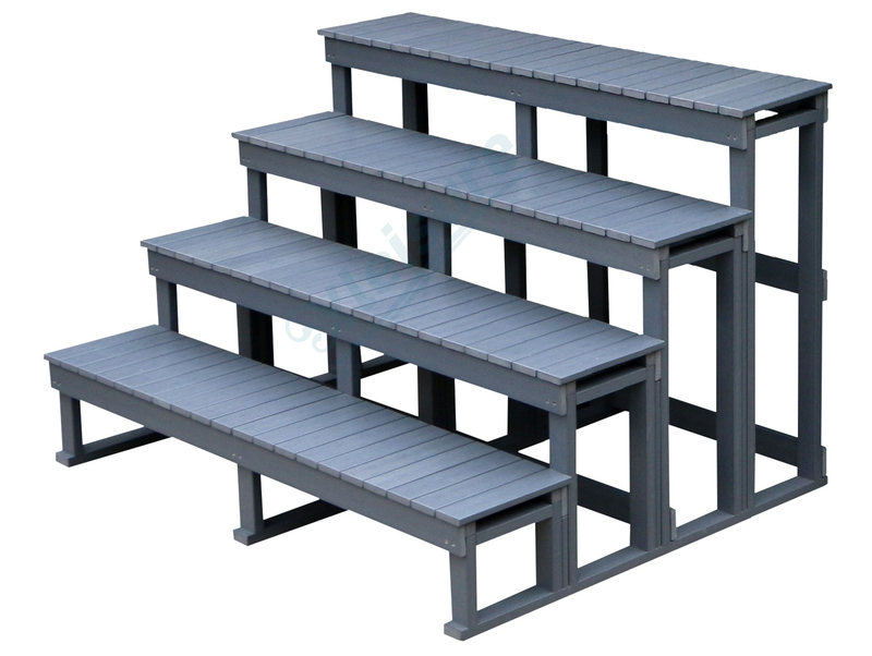 4-tier Synthetic Wood-grain PS Swim Spa Step - grey